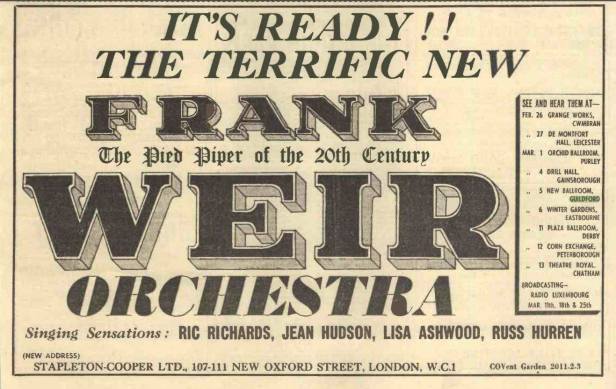 New Ballroom, Guildford: Frank Wier Orchestra w/ Ric Richards, Jean Hudson, Lisa Ashwood, and Russ Hurren