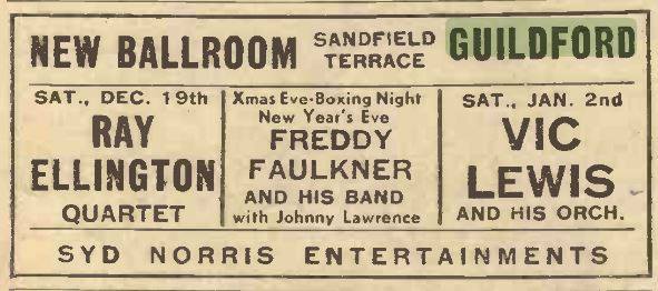 New Ballroom, Guildford: Vic Lewis and his Orchestra