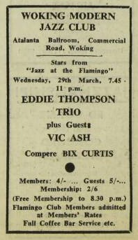 Atalanta Ballroom, Woking: Eddie Thompson Trio w/ Vic Ash
