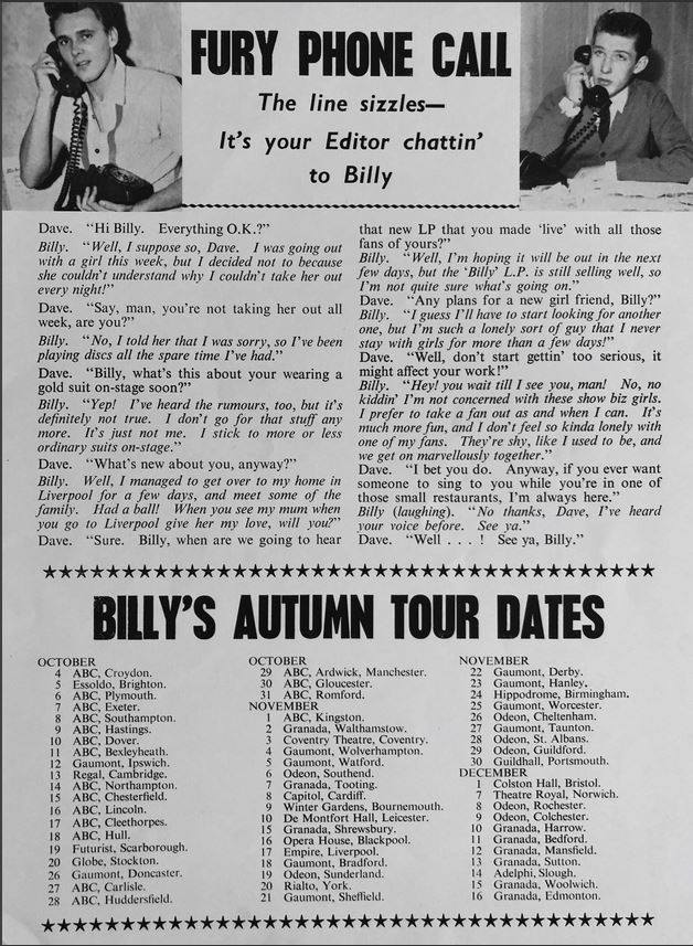 Odeon, Southend: John Leyton w/ Mike Sarne, Mike Berry, The Innocents, Billie Davis, Jet Harris & Tony Meehan, Duffy Power & The Hi-Fi’s, Billy Doyle & The Hi-Fi’s, Don Spencer, Bick Ford & The Hi-Fi’s, Grazina Frame & The Hi-Fi’s, and The X-L Five