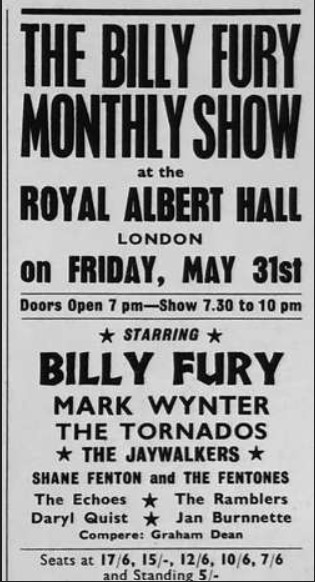 Guildhall, Portsmouth: John Leyton w/ Mike Sarne, Mike Berry, The Innocents, Billie Davis, Jet Harris & Tony Meehan, Duffy Power & The Hi-Fi’s, Billy Doyle & The Hi-Fi’s, Don Spencer, Bick Ford & The Hi-Fi’s and The X-L Five