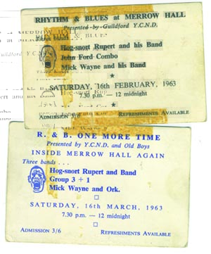 Ricky Tick, Village Hall, Merrow: Hogsnort Rupert and his Band w/ Group 3 + 1, and Mick Wayne and Ork.