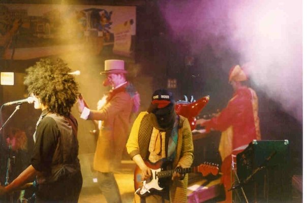 (c’85-88) Colin “The Fishperson” Robb (bass), Steve Griffiths (vocal / guitar), Mick Highgate, Kaz Jones, Chris McIndoe (keyboards) and Bev Chadwick (sax).