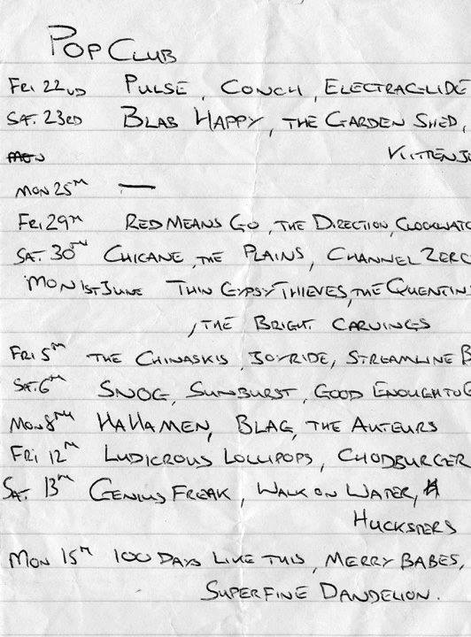 On 1 February ’92, the band were supported by Pretty Green, The River Thieves and Peachrazor at the Buzz Club, held at the West End Centre.