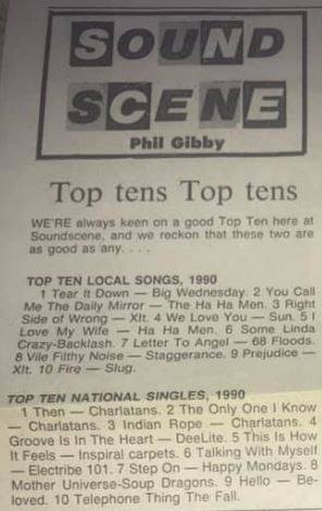 The Ha Ha Men’s ‘You Call Me The Daily Mirror’ was #2 and ‘I Love My Wife’ was #5 in Soundscene’s Top Ten Local Songs 1990. Jan ’91 saw the band contracted to Flat Records and the beginning of work on the ill-fated “Love Burger” album, that just never appeared.