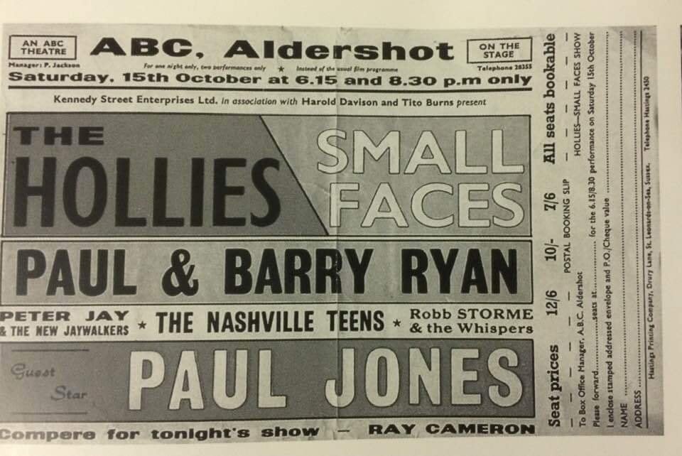 ABC Cinema, Hull: The Hollies w/ The Small Faces, Paul Jones, Paul & Barry Ryan, The Nashville Teens, Robb Storme & The Whispers, and Peter Jay & The New Jaywalkers