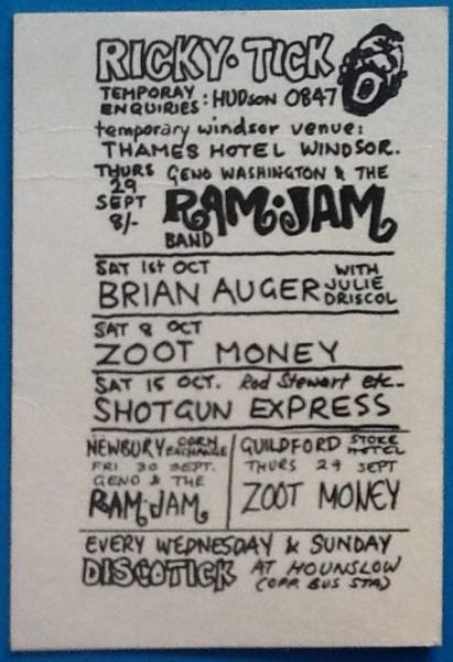 Ricky Tick Club, Stoke Hotel, Guildford: Geno Washington & The Ram Jam Band