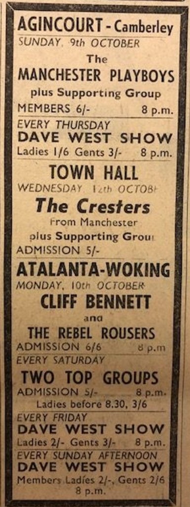 Atalanta Ballroom, Woking: Cliff Bennett and The Rebel Rousers