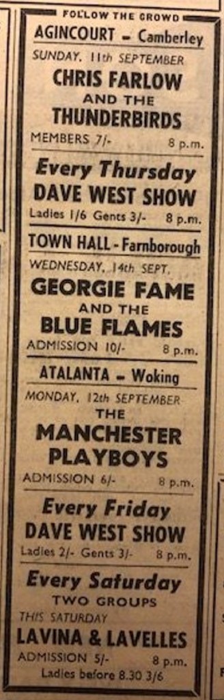 Agincourt, Camberley: Chris Farlow and The Thunderbirds
