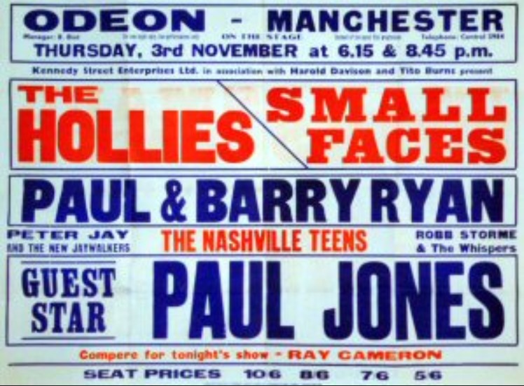 Odeon, Manchester: The Hollies w/ The Small Faces, Paul Jones, Paul & Barry Ryan, The Nashville Teens, Robb Storme & The Whispers, and Peter Jay & The New Jaywalkers
