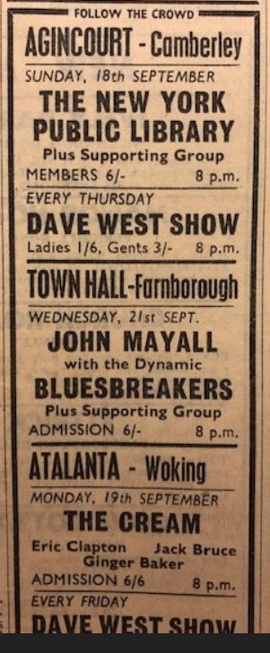 What follows is a list of gigs, with images of tickets, adverts and flyers where possible, either at GU postcode venues or featuring bands, listed in bold if we have an image, we like to claim are part of the Woking/GU Soundscene in 1966: