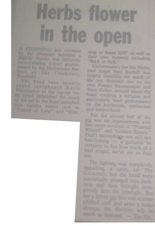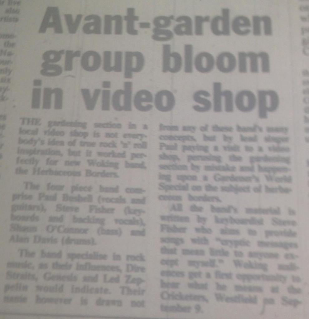 This four piece, named after a Gardener’s World video special on herbaceous borders, debuted at the Cricketer’s, Westfield in May ’88, adding Kevin Whitchurch (sax) later in their tenure, and returning to the pub on 9 September that year. They specialized in rock music, as their influences, Dire Straits, Genesis and Led Zeppelin would indicate, covering classics such as ‘Pinball Wizard’ and ‘Golden Brown’. All the bands own material was written by Fisher who aimed to provide songs with “cryptic messages that mean little to anyone except himself.” After a hiatus they re-emerged as John Fiddle and the Freewheelers supporting Getz Loose at The Grey Horse, Kingston only to dispel reformation rumors in early ’89, with Fisher going to Call of Cain and Bushell to Van Gogh and the Earlobes.