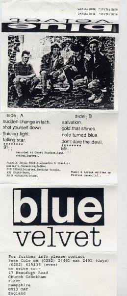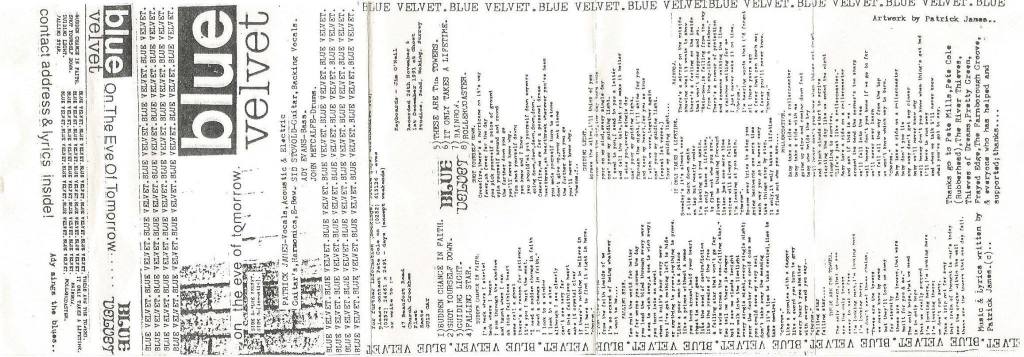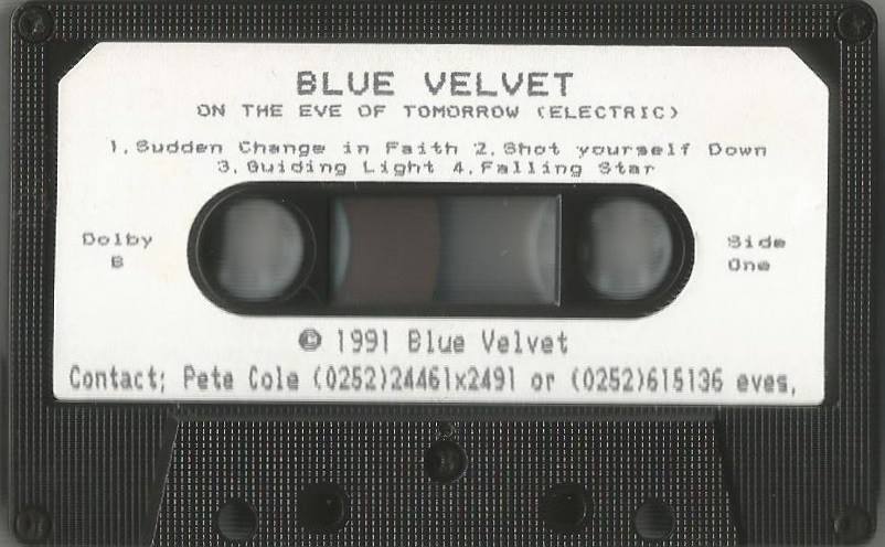 Blue Velvet’s “On The Eve of Tomorrow” demo cassette electric side 1. Source Sid StovoldBlue Velvet’s “On The Eve of Tomorrow” demo cassette acoustic side 2. Source Sid Stovold