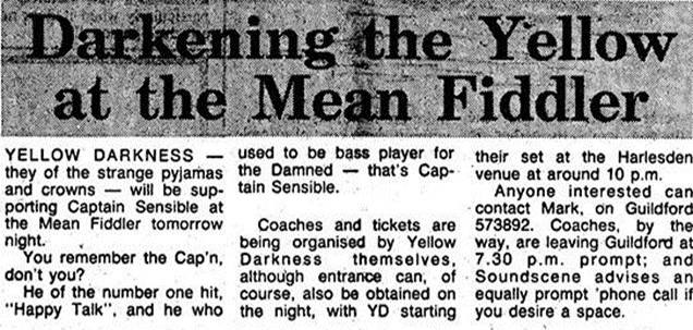 On 6 June ’89 Yellow Darkness supported Red 57, along with If This Was You, at The Rock Garden in Covent Garden and on 18 December they opened for Raw Ho! and Eager Sin Babies at The Cricketers, Kennington. On 5 December ’89 the band played Fresh at the Bull & Gate, Kentish Town, supporting Bad Soul along with The Catholics.