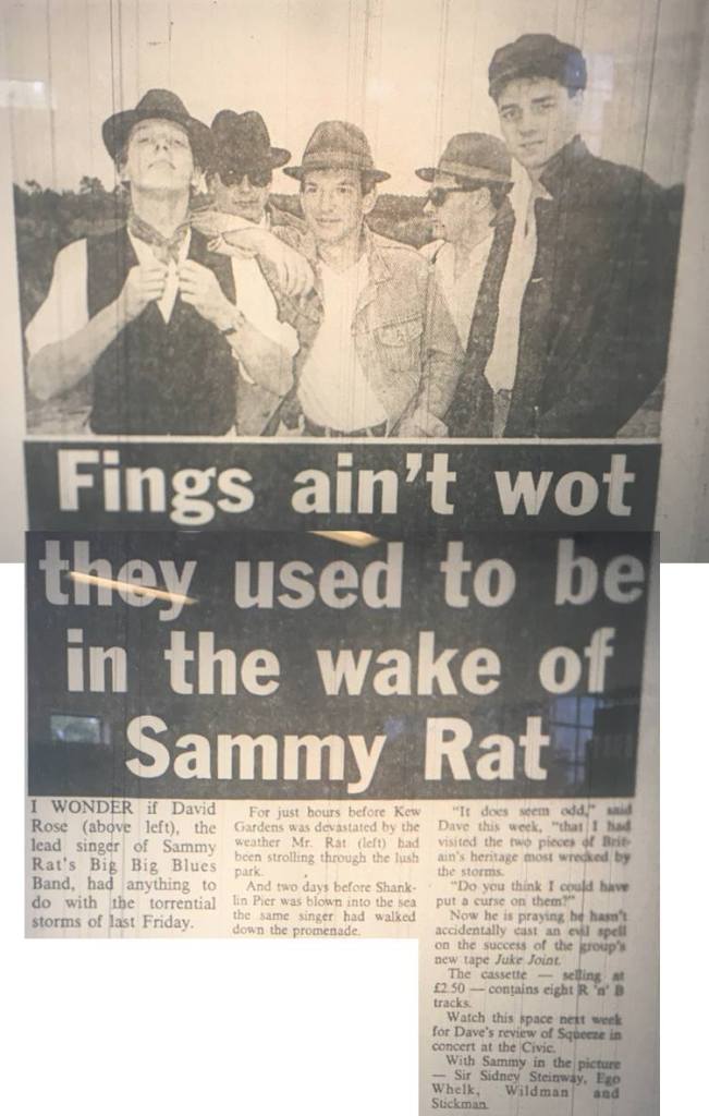 This led to other supporting slots at the Civic, including Julia Fordham, The Supremes and The Blues Band. The Talbot, Ripley became a regular Sunday evening gig for the band and was always well attended. May saw the boys back at the West End Centre supporting The Rhythm Sisters. In July that year, the band also secured a supporting slot for Desmond Dekker at The West End Centre, Aldershot. That same month it was rumored that Sammy Rat would be on the bill for Showcase ’88 to be held at Centre Halls, Woking; but it wasn’t to be, consoling themselves with a headliner at Queens Head, Byfleet. Their latest eight track demo however was well received by Soundscene reviewers, labeling the band ‘the notable R’n’R heroes of our time’ and the demo ‘of the usual quality and distinction.’ On 1 September ’88 the full band played The White Lyon, Worplesdon.