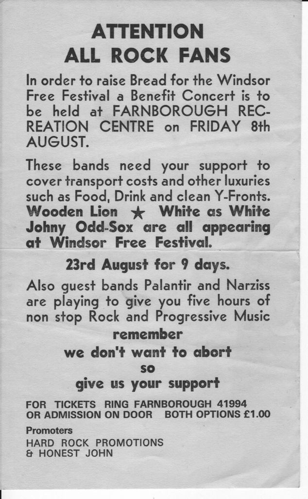 Watchfield Free Festival, Wiltshire: The Stranglers w/ Hawkwind, Gong, Global Village, Traffic, Strife, White as White, Zorch, 101ers, Tibet, Arthur Brown and Half Human Band