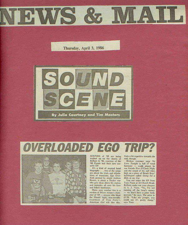 In ’86, Andrew Brown was the band’s vocalist and featured on the cassette EP they release in March that year, which also carried his self-penned ‘Ego Overload’, along with the band’s take on Bryan Adams’ ‘Summer of ’69’, ‘No Love Tonight’ – which reportedly would not have been amiss on a Five O’Clock High EP – and ‘Going for a Ride in my Car’. The 68 Floods were the 6th band on at Showcase ’88, held at Centre Halls, Woking in Sept ’88. By this time singer Brown had been replaced by Richard Wood and drummer Steve King was replaced by Simmons, in all there had been nine line-up changes in just under three years. Once noted, by one Soundscene pundit, for “the amount of apathy…coming from the speakers” The 68 Floods came 4th in the Soundscene demo review of ’88. Around this time the band released the four track – ‘Sunshine Day’, ‘Another Girl (Another Sing)’, ‘My Biggest Weakness’ and ‘It’s Not For Me’ – cassette EP, titled ‘Flood-tide’ and produced by Tim Laws.