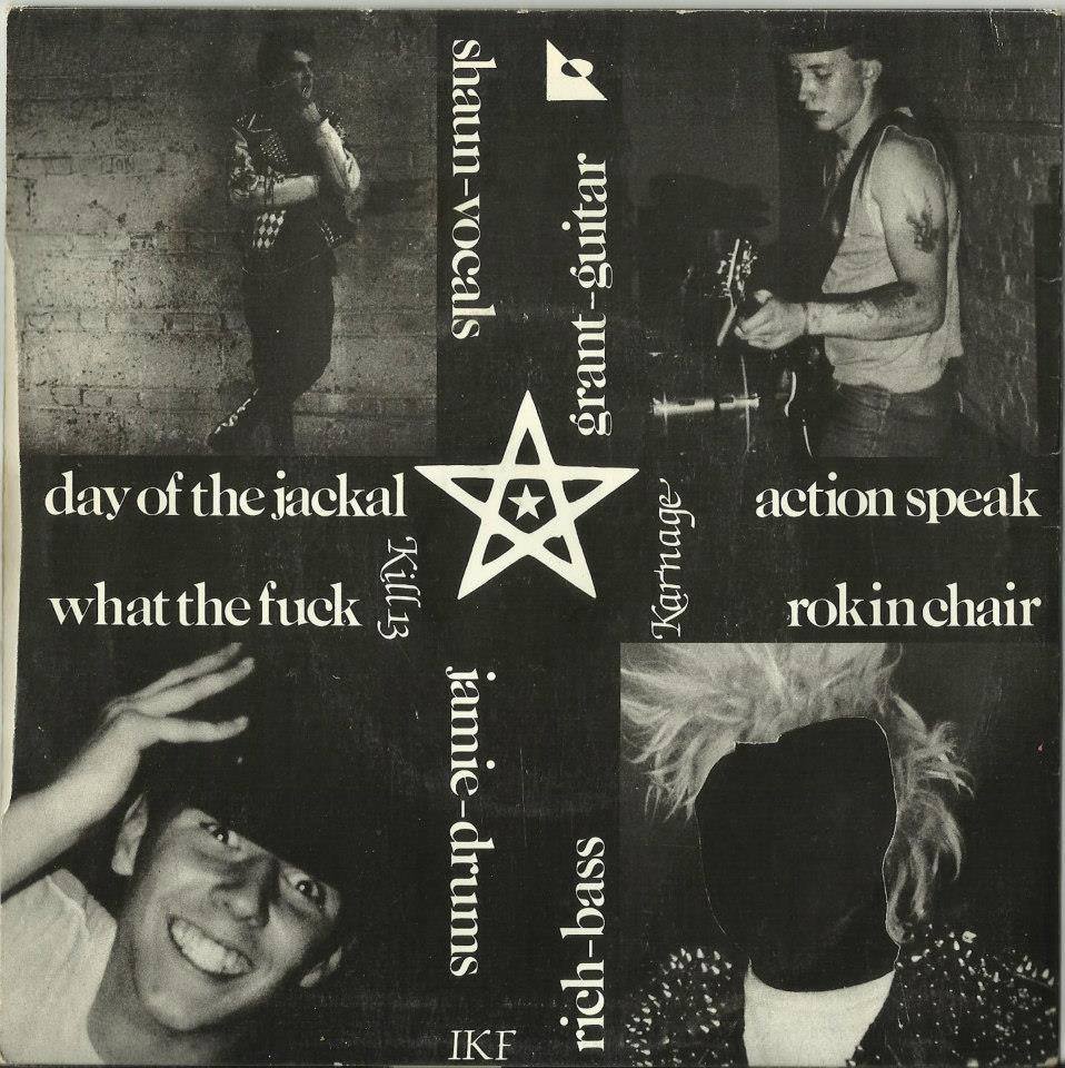 Taylor’s “What The Fuck”, Burt’s “Rockin’ Chair”, and the Sime penned “Day Of The Jackel” and “Action Speak” from the Robey set would go on to be released by Keith Bagley’s London based label Illuminated Records [KILL13] as the “Ready to Rot” 7″ vinyl EP in late ’82, pressed at Orlake Records. The record was available from the band from their North Warnborough Village Hall gig on 13 November ’82 onwards.