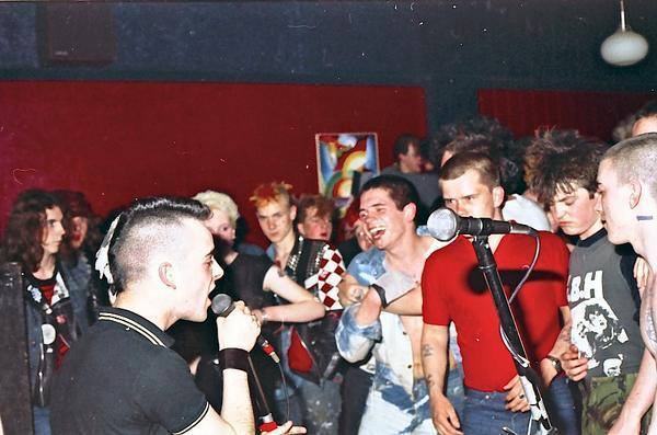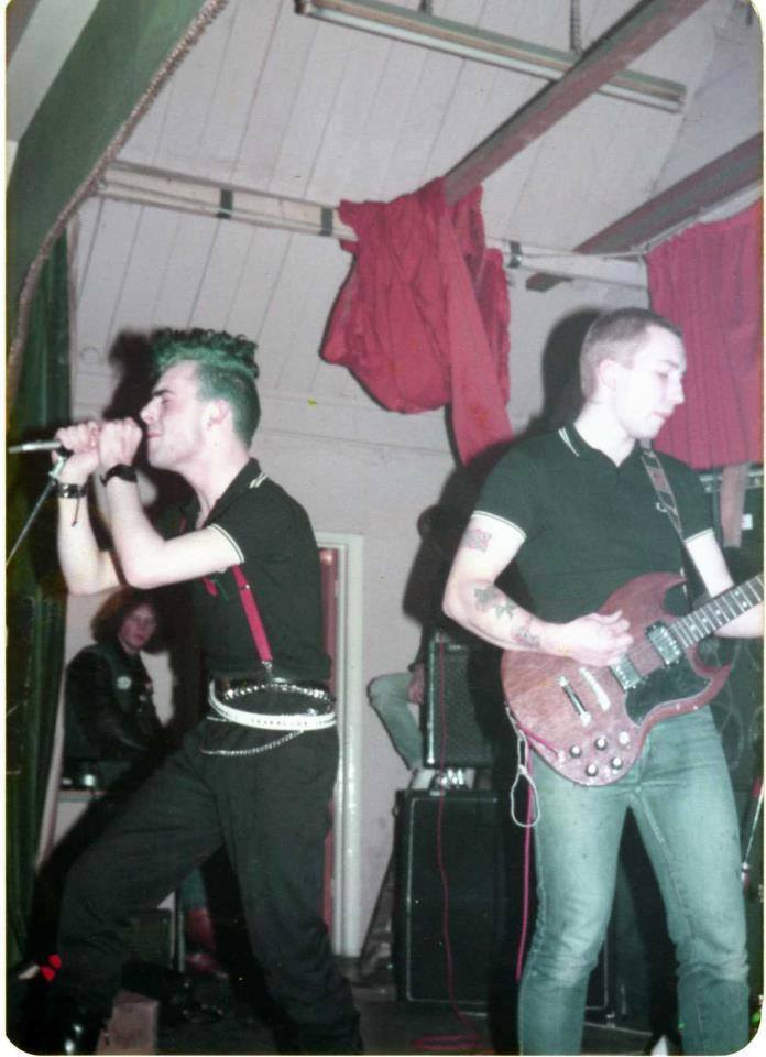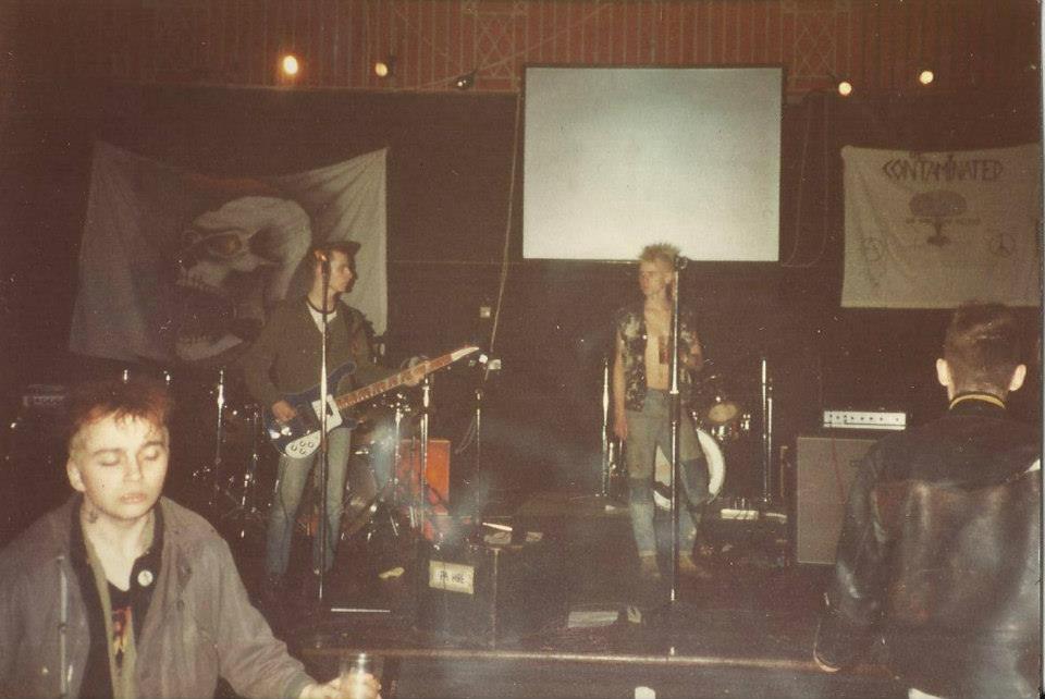 This Farnborough punk band – Taylor, Sime & Abethell all went to Oak Farm School and lived on the same estate, Burt was from Fleet – formed in early ’82 and supported bands such as Subhumans, Flux of Pink Indians and Cult Maniax as well as hiring out local halls etc for gigs. One of the bands first gigs was at The Maltings, Farnham on 7 Feb ’82. The next month they supported Exit at the West End Centre. Aldershot. The Royal, in Guildford, at the time Simon George and Kirk were handling the the bookings there, was also a regular venue. They recorded a few demos, notably they record their set at The Sir George Robey, London; self-releasing the 9 tracks as a single sided cassette titled imaginatively “Live At The Sir George Robey Pub, London”.