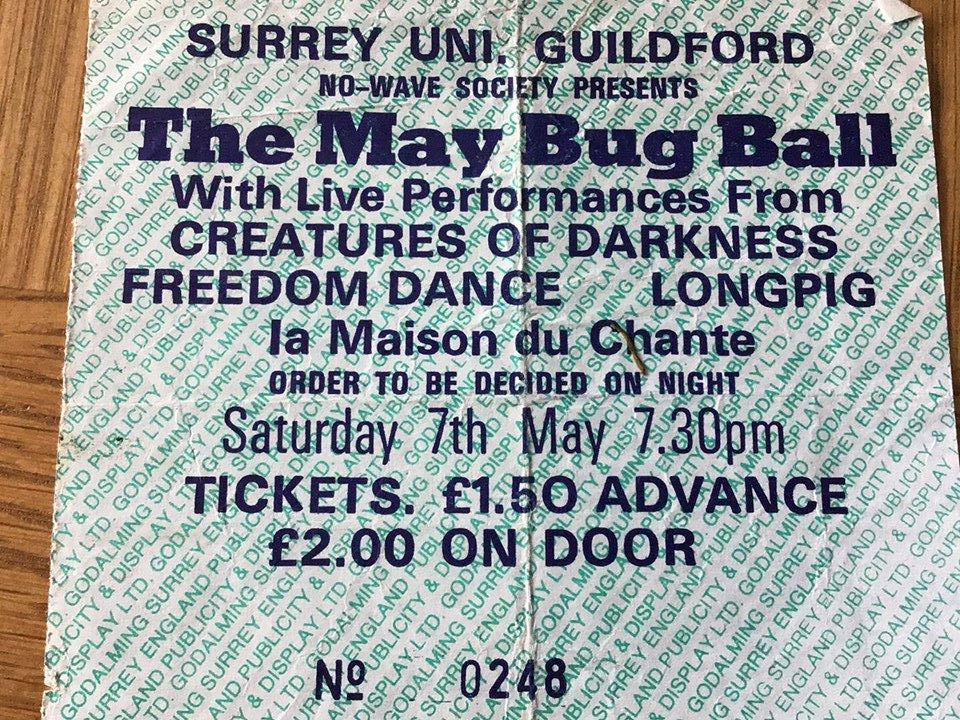 The band appeared at local venues across Guildford and Woking including the Old Schoolhouse, Woking and the Sea Cadet Hall and University of Surrey, Guildford. La Maison Du Chants played the May Bug Ball at University of Surrey on 7 May 1983, along with Creatures of Darkness, LongPig, and Freedom Dance. Translated from the French the bands name is The House of Songs, and they along with Freedom Dance often shared the stage and were back together on 13 August 1983, along with Rainbow Road at the Old School House, Woking. Paul Dreczko (keyboards) joined the band around this time replacing Joseph.