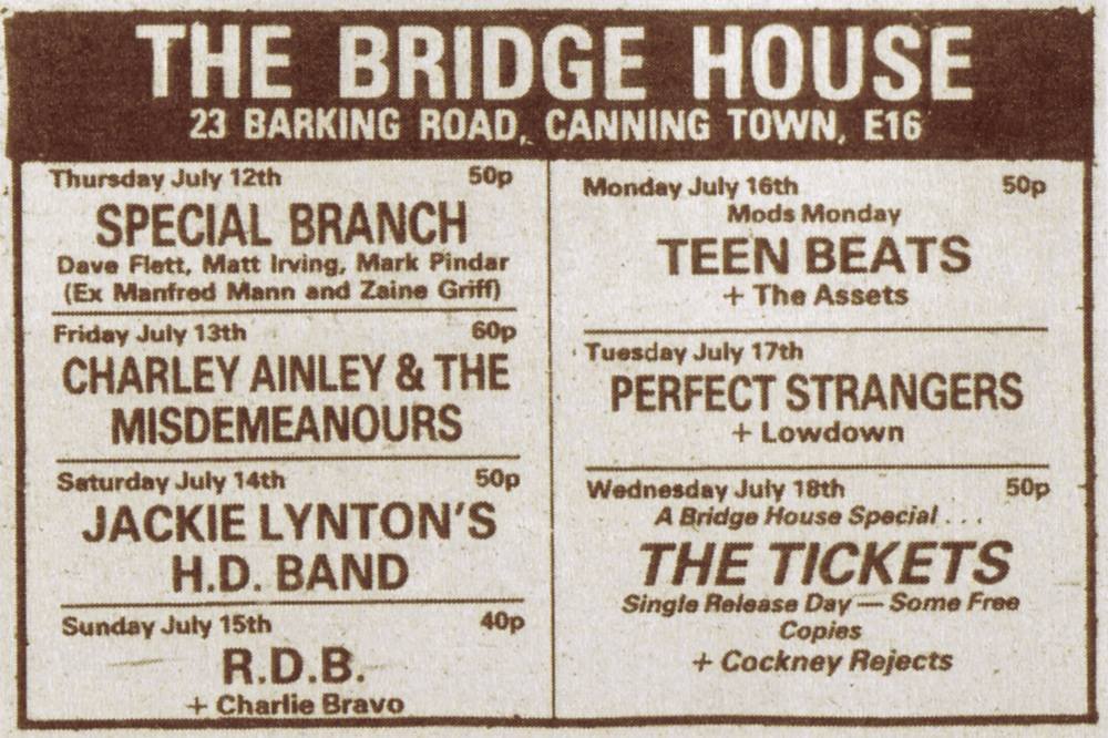 The Bridge House, Canning Town: Secret Affair, The Mods, Beggar, The Small Hours, Squire, The Merton Parkas