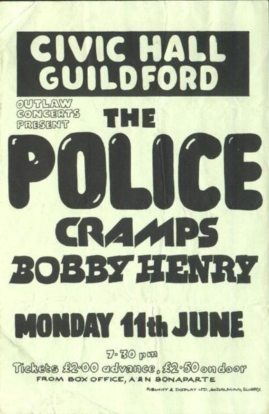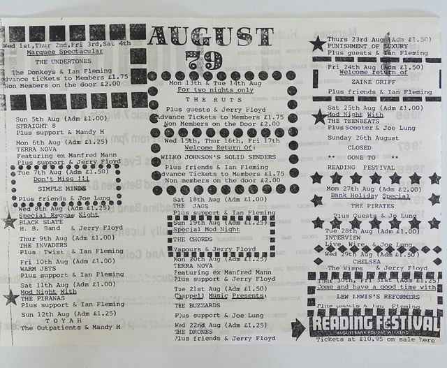 What follows is a list of gigs, with images of tickets, adverts and flyers where possible, either at GU postcode venues or featuring bands, listed in bold, we like to claim are part of the Woking/GU Soundscene in 1979: