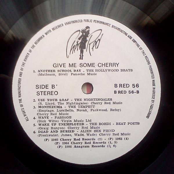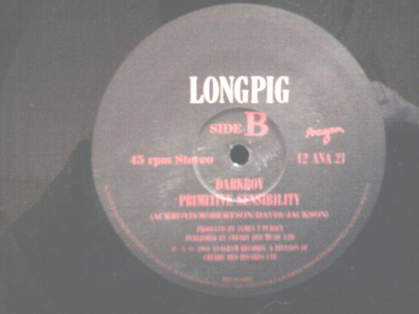 LongPig’s “Earthrobbers” appeared on the “Give Me Some Cherry” compilation vinyl LP produced by Fabelsound for the Music-Box (RED 56) and Cherry Red (B RED 86) labels. This also featured the likes of Alien Sex Fiend, Vice Squad and The Monochrome Set. Anagram still owns all the rights to Longpig’s catalog and they reissued “Of Love and Addiction” in 2006.