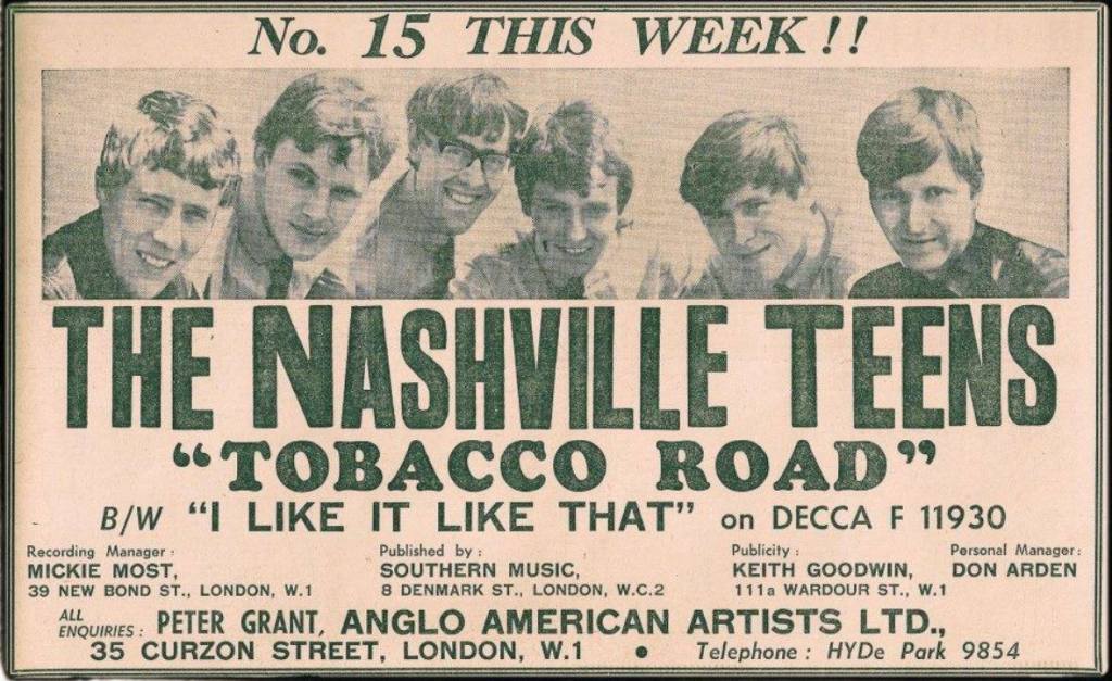 They later backed Carl Perkins on his hit single “Big Bad Blues” in ’64, and played with Chuck Berry when he toured 22 British venues in May ’64, and while they received a page in the package tour program didn’t get a mention on the posters. Also in ’64, Mickie Most produced their debut single “Tobacco Road” which reached number 6 in the UK Singles Chart (“Hard Day’s Night” was #1 that week – August 8th) and number 14 in the U.S. Billboard Hot 100 Chart. Here’s a fact from “The Rough Guide to Cult Pop” – ‘this 1960’s quintet signed to Decca for seven-eighths of a penny per record sold, meaning if each member were to make a modest £1000, they needed to sell 1,600,000 records’. They didn’t, by all accounts.