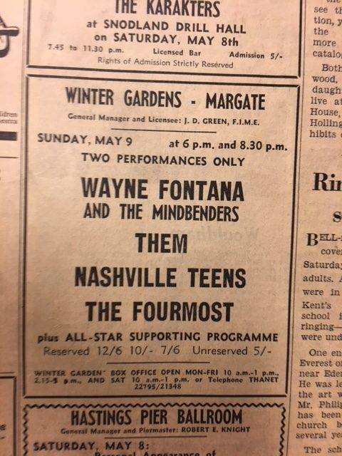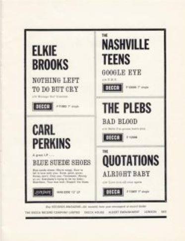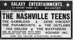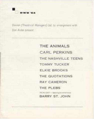 In late September, after appearing on Ready, Steady, Go! on 25 September ’64, and October ’64, Nashville Teens were part of an Arthur Howes and Brian Epstein package tour, playing the venues The Kinks couldn’t, along with Billy J. Kramer and The Dakotas, The Ronettes, Yardbirds, Cliff Bennett & The Rebel Rousers, and Bill Black’s Combo. They definitely performed at the Odeon, Southend on 24 September ’64. The follow-up to “Tobacco Road”, another Loudermilk song, “Google Eye”, reached number 10 in the UK in October. In support of the single they began touring with The Animals, Carl Perkins, Tommy Tucker, Elkie Brooks, The Plebs and Quotations. This 28-date package tour kicked off at the Odeon, Liverpool on 19 October ’64, swung near home on 3 November ’64 when it called in at the Odeon, Guildford, and wrapped up at the Winder Gardens, Bournemouth on 15 November ’64. In December ’64 they launched into a US Tour.