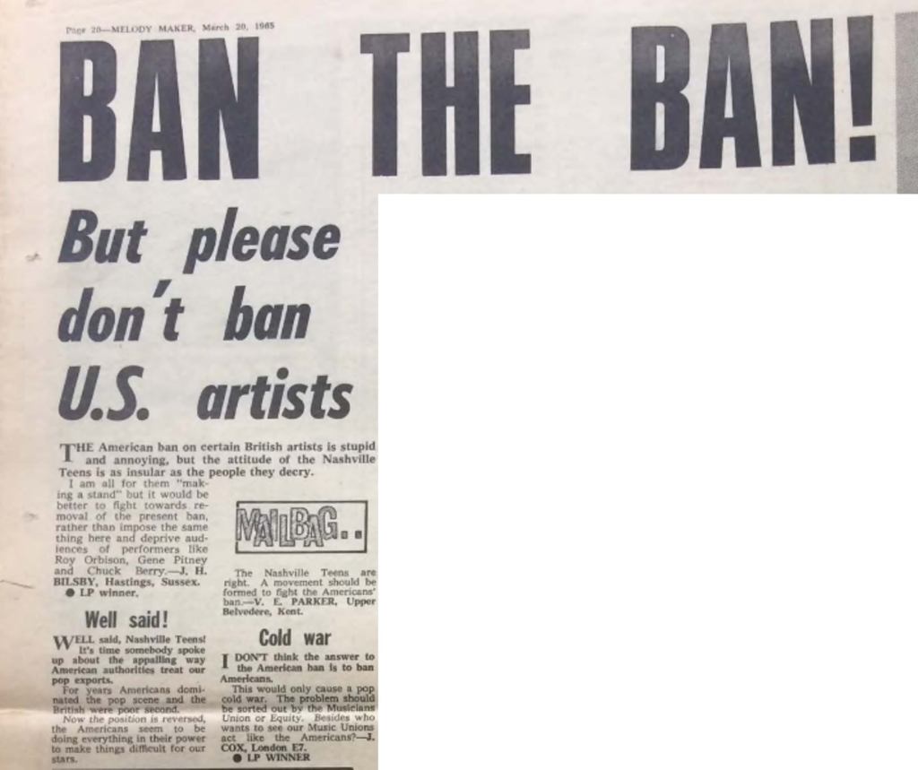 In early ’65, Nashville Teens were front and centre in decrying the restrictions the US were imposing on British bands and singers. A further three top fifty singles, “Find My Way Back Home”, released on 19 February ’65 and recorded in New York; “This Little Bird” released on 30 April ’65, the same day as Marianne Faithfull release her single of the same name; and “The Hard Way” made a brief appearance the following year but three subsequent records: “I Know How It Feels To Be Loved”, “Forbidden Fruit” and “That’s My Woman”, all failed to chart.