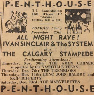 Jenkins left in ’66 to join The Animals, and was replaced by his predecessor Roger Groome. Reportedly Phillips got an offer to join Cream in ’66 – he refused. In the late sixties the group returned to its old craft: backing other artists like Carl Perkins, Chuck Berry and Gene Vincent. On the 23 October ’66 they are at the ABC Cinema, Hull on the first of five package tour dates with The Hollies, The Small Faces, Paul Jones, Paul & Barry Ryan, Robb Storme & The Whispers, and Peter Jay & The New Jaywalkers. This package tour promoted by Kennedy Street Enterprises, Harold Davison, and Tito Burns would also take in the Odeon, Manchester (3 November), Odeon, Leeds (4 November), Odeon, Sheffield (5 November), and City Hall, Newcastle (6 November).