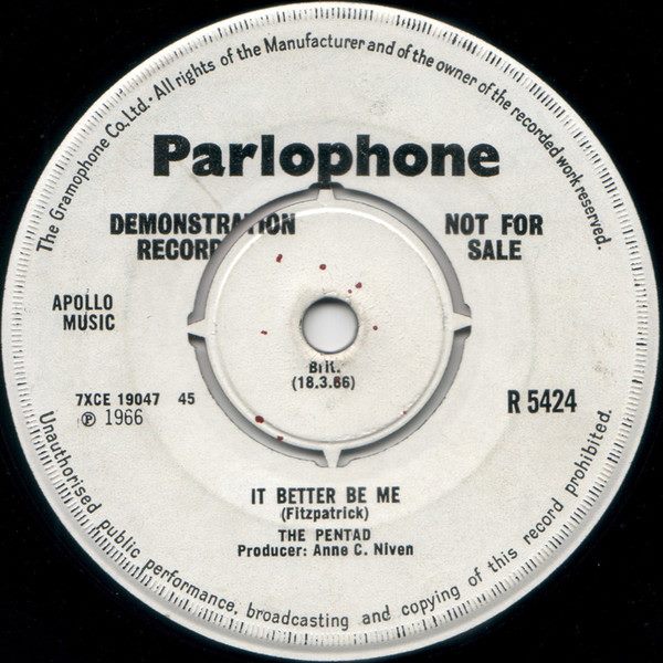 Later that same year “Don’t Throw It All Away”, backed by “Too Many Ways”, also on Parlaphone [R 5368] – written by Brian Parker and Tommy Moeller (as was “Nothing But Love”) of Unit 4+2 – was released. In early ’66 they were still playing local venues like The Sunday Club, Addlestone (13 Feb) as well as further afield, such as Corby Civic Centre (29 Jan) with The Brumbeats; the Esquire Club, Sheffield (5 Feb); The Blue Lagoon, Newquay (12 Feb) with The Other Five; and the Alexandra Hall, Halifax (19 Mar) supported by The Vicarts. A final single, “Something Other People Call Love” backed by “It Better Be Me” was issued in March ’66.