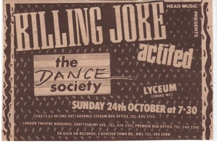 Lyceum, London: Killing Joke w/ The Dance Society, and Actifed