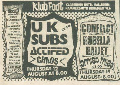 Klub Foot, Clarendon Hotel, Hammersmith: UK Decay w/ Actifed, and Ritual