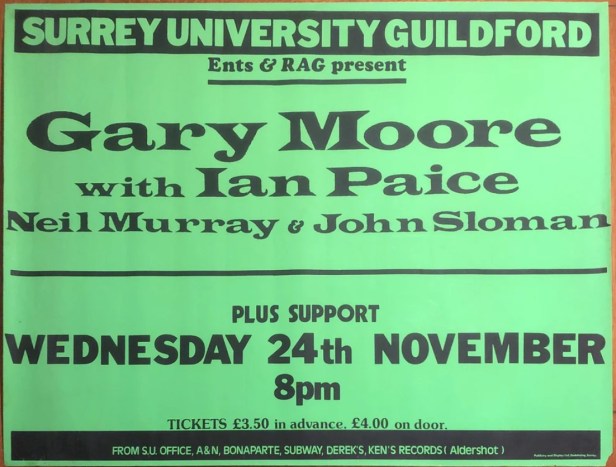 What follows is a list of gigs, with images of tickets, adverts and flyers where possible, either at GU postcode venues or featuring bands, listed in bold, we like to claim are part of the Woking/GU Soundscene in 1982: