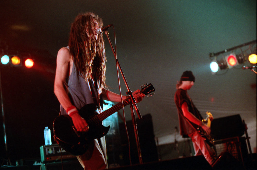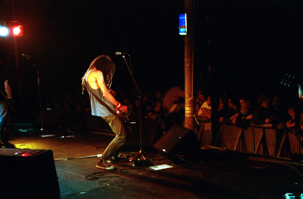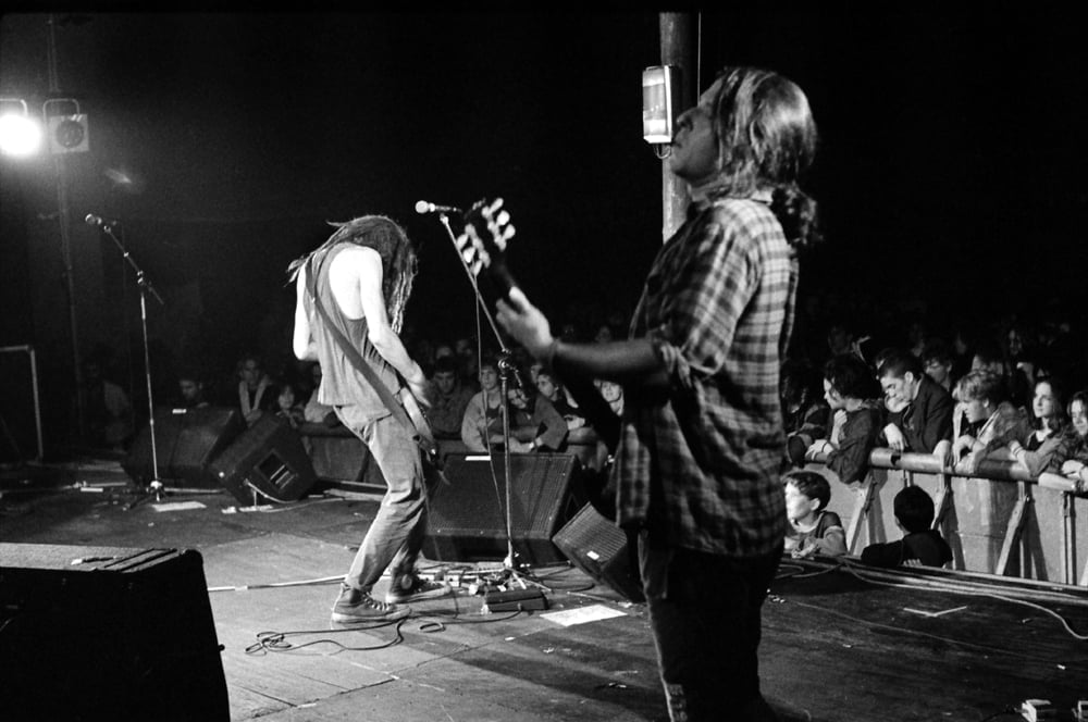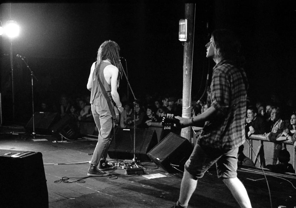 13 August 1994: Wiz and Gerry, photographed by Jenny Carruthers, of Mega City Four at the Abbey Park Festival. Source: Abbey Park Festival Archive