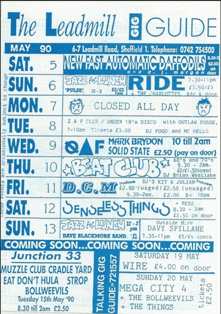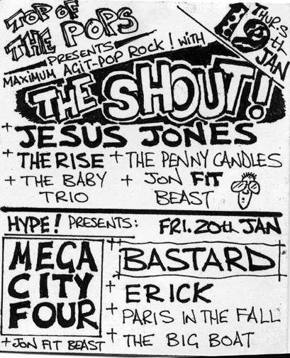 By this time the NME (Steve Lamacq was often seen at the bands gigs which led to MC4 fan and regular gig goer Nick? often sharing the non-league football scores) was predicting a top rate debut album and a number of major labels were courting, including Polydor. The Hype at Bull & Gate, London had MC4 headline on 20 January, with Jon Fit Beast, Bastard, Erick, Paris in the Fall, The Big Boat, and the Hungerford Hitmen in support. Then in late January saw their first two singles released in France. Around this time the musical wing of Anti-Fascist Action, Cable Street Beat, tried to recruit MC4 to support the Angelic Upstarts at the Robey; but with MC4 not wishing to be ‘political’ it went nowhere. Then in February ’89 the band headed to Scotland, gigging there and back. The first 3 singles were released as an EP in Spain in late February which followed in March by joining The Seers UK tour for 2 weeks, and hitting the studio to record the album after that.