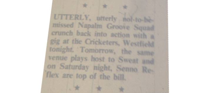 A veritable who’s who of local bands played the Cricks: Blue Velvet, Eat The Sofa, Geneva, In Flight, Inter, Lower Levels, Napalm Groove Squad, Panther, Precious Few, Seven Ann’s Eye, Something Religious, Razor’s Edge, Sweat, Tel Aviv Quartet, The Ant Hill Mob, The Mighty Strypes, The Sack, Van Gogh and the Earlobes, Womb, and XLR8 among them.