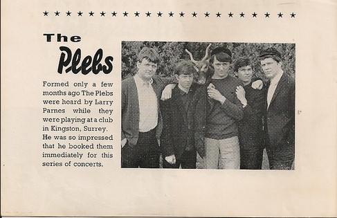 Soon after forming Celler Club owner Hugh O’Donnell offered them a residence at the club. The Plebs did indeed play Celler Club, Kingston upon Thames pretty regularly in ’64, including a show support John Lee Hooker with John Mayall’s Blues Breakers on 3 June ’64, and with Jimmy Reed and Groundhogs on 16 November ’64. It was O’Donnell who introduced the band to Larry Parnes who secured them for a series of thirteen Sunday concerts for the Summer Season at the Britannia Pier, Great Yarmouth, called The Sunday Extra Special, from June through to September. They were the opening act and formed Mark Wynter and Gene Vincent’s backing band, performing alongside The Applejacks, The Mojos, The Karl Denver Trio, Marty Wilde & The Wildcats, The Big Three, The Gamblers, and The Crestors that Summer. The band also supported The Dave Clark Five, The Hollies, The Trebletones, and The Kinks.