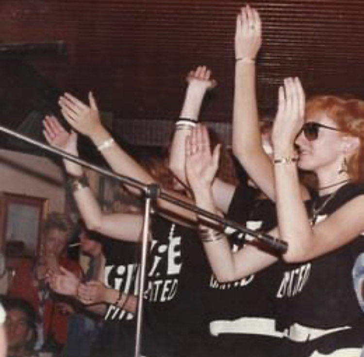 29 July 1986: Life Limited with fans outside the venue of their debut gig. Picture courtesy of Lizzie Hall.