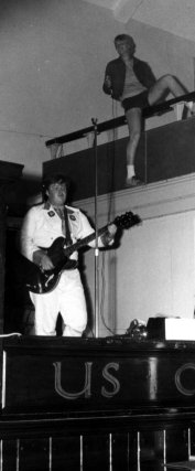 Harry guested with Blood & Fire in late September ’82 at Butlins, Bognor Regis. Dragon was still in his KFC work attire, Mayhew a vintage SA band festival tunic and Griffiths in a tux and bow tie. A hospitalization with appendicitis and then a move from Woking to Worthing saw Mayhew drop out and replaced by Barnett, who first picked up the sticks for an October ’82 gig in Colchester, supported by Alvin Allison’s other band National Youth Banned. The gig was recorded for Citadel Sounds and later released on cassette. Around Christmas ’82 the band performed at a HMP Coldingley and Harry become a full time member.