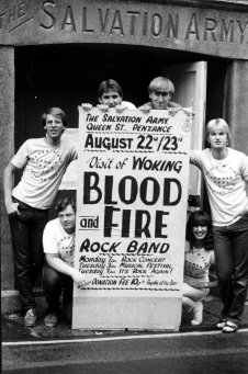 This Christian rock band formed in ’80 with the original line-up of the Allisons, Malcolm Dragon (guitar/bass), Jason Griffiths (bass), and Tony Voice (drums), who was shortly replaced by Ian Mayhew, breaking the Salvation Army (SA) brass / marching band mold and receiving some flack for being different. They pulled their name from the SA flag and the organisation’s motto ‘Blood & Fire’ right before taking the stage at The Church of the Good Shepherd Clan, Pyrford for their first gig. The band remained fairly local in the early days playing Woking and Guildford, with the odd trip further afield, with a basic lighting set-up operated by Jan Mayes and a spot directed by Paul Strickland.