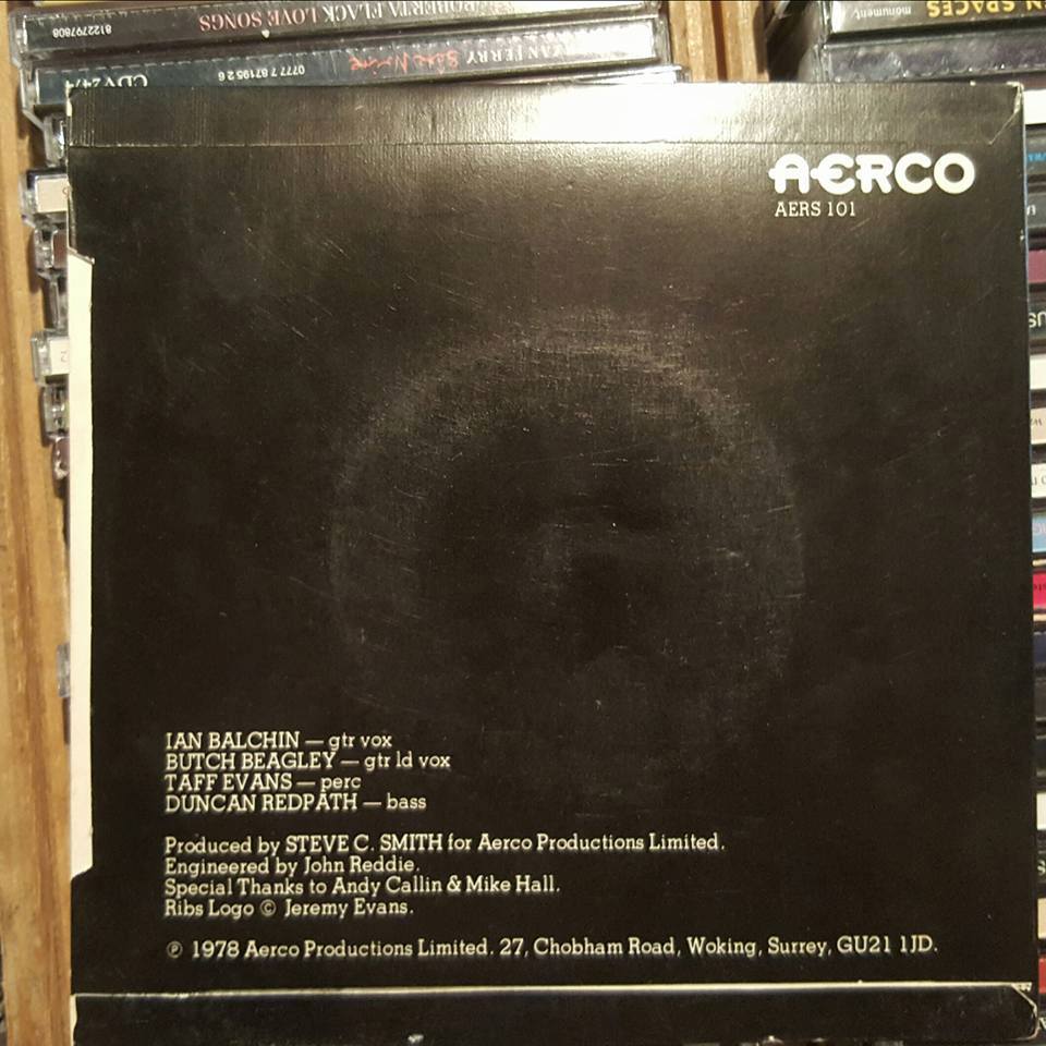 All the members of this four piece attended Woking Grammer School. They released one 7″ on Woking based Aerco Records (AERS 101) in ’78, featuring the Ribs logo designed by Jeremy Evans and carrying “Man With No Brain” on the A-Side and “Long Time Coming” on the flipside, with both tracks produced by Steve C. Smith and engineered by John Reddie; who are both better known for their engineering and production work for classical and medieval music. Smith attended the Tonmeister course at the University of Surrey, and it is believed that Ribs’ single was recorded at the university’s studios.