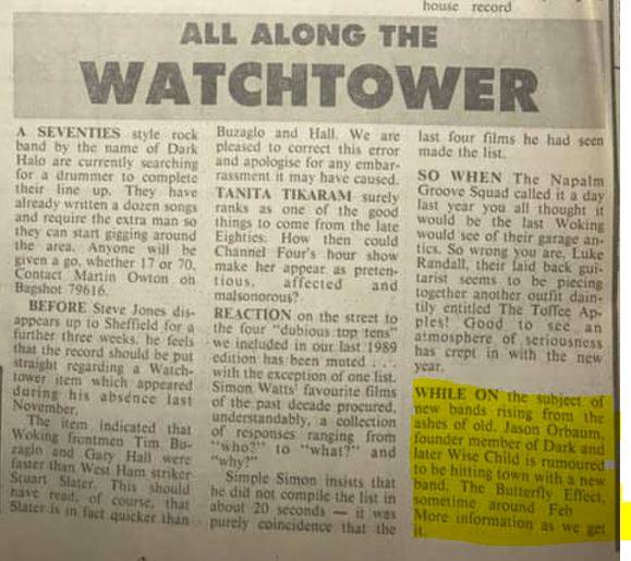 Jason Orbaum, a founding member of Dark and Wise Child, pulled The Butterfly affect together with his sister Alison Orbaum in February ’92 On 1 April ’93, The Butterfly Effect were featured in a Soundscene column April Fool’s article about their split from Porty Bruford, the band’s foolish manager. Was this band purely a jolly jape?