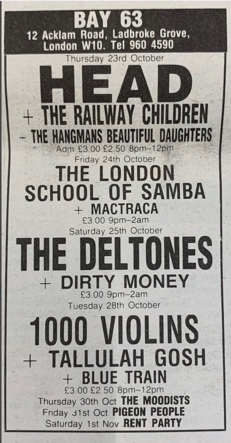 What follows is a list of gigs, with images of tickets, adverts and flyers where possible, either at GU postcode venues or featuring bands, listed in bold, we like to claim are part of the Woking/GU Soundscene in 1986: