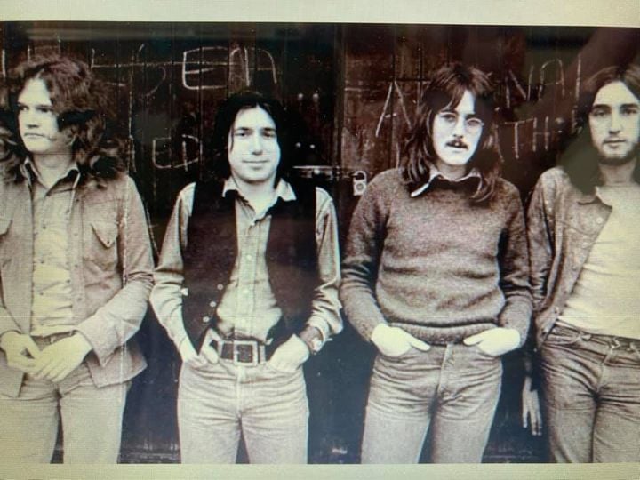 (c’70-’77) Pat Martin (bass / vocals), Ken Baker (guitar / keyboards/ vocals), Pete Perryer (vocals / drums) and Trevor Mee (guitar / vocals)