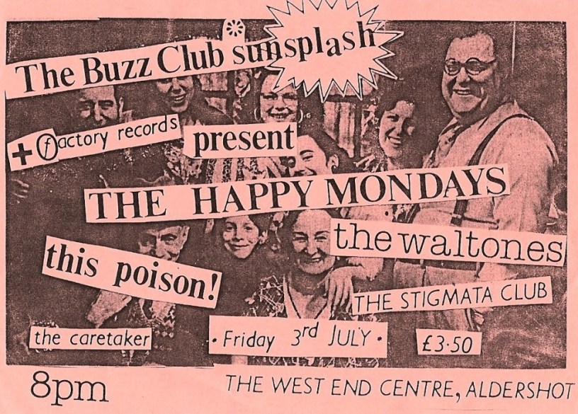 Buzz Club, West End Centre, Aldershot: The Happy Mondays w/ The Waltones, This Poison!, Stigmata Club, and Caretaker