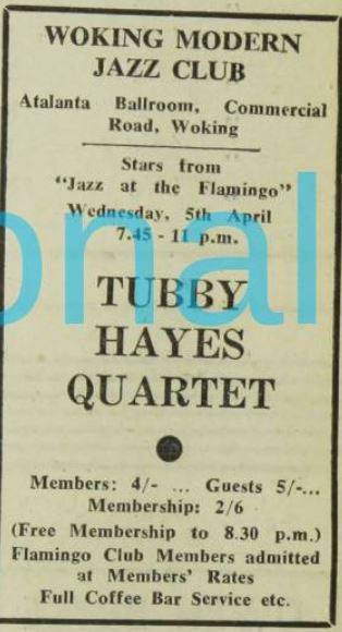 19 Sept 1958: The Jazz Couriers supported by the David James Trio were at the Atalanta Ballroom, Woking. Picture courtesy of Ben’s Collectors Records