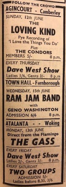 You could have seen Kenny Ball Jazzmen (4 Sept ’61), The Rolling Stones (19 Aug ’63 – a week before appearing on ‘Ready, Steady, Go’), Spencer Davis Group (18 Jan ’65), Hedgehoppers Anonymous (8 Nov ’65), Jerry Lee Lewis (in ’65 – who had to play on a Hammond organ as the piano was broken), Gary Farr & the T-Bones (21 Mar ’66), .