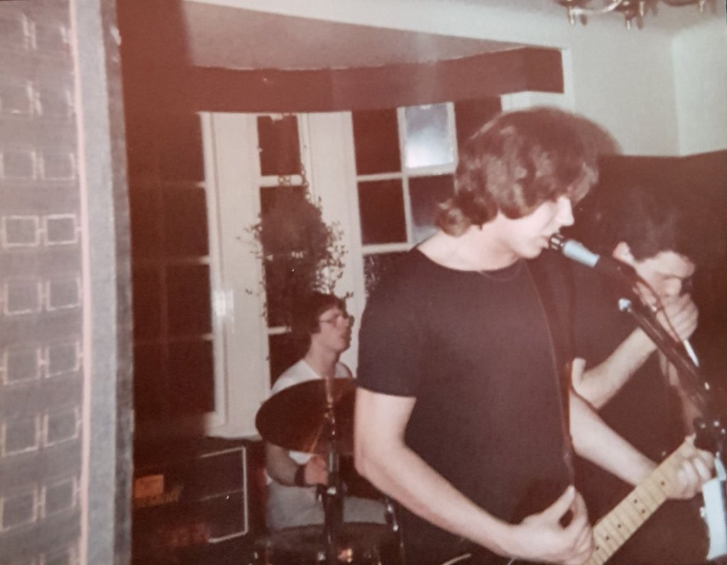 Alvis, who’d previously been in The Fix, teamed up with fellow fellow Westfield residents de Kock and ex-Panther and Cutting Edge Raphael, and Turner from Old Woking to form XLR8, who rehearsed in Sutton Green. XLR8 played their first gig at The Cricketers, Westfield and were on the local circuit for about 2 yrs in the early 80’s, including The Cricks, almost as a residency.
